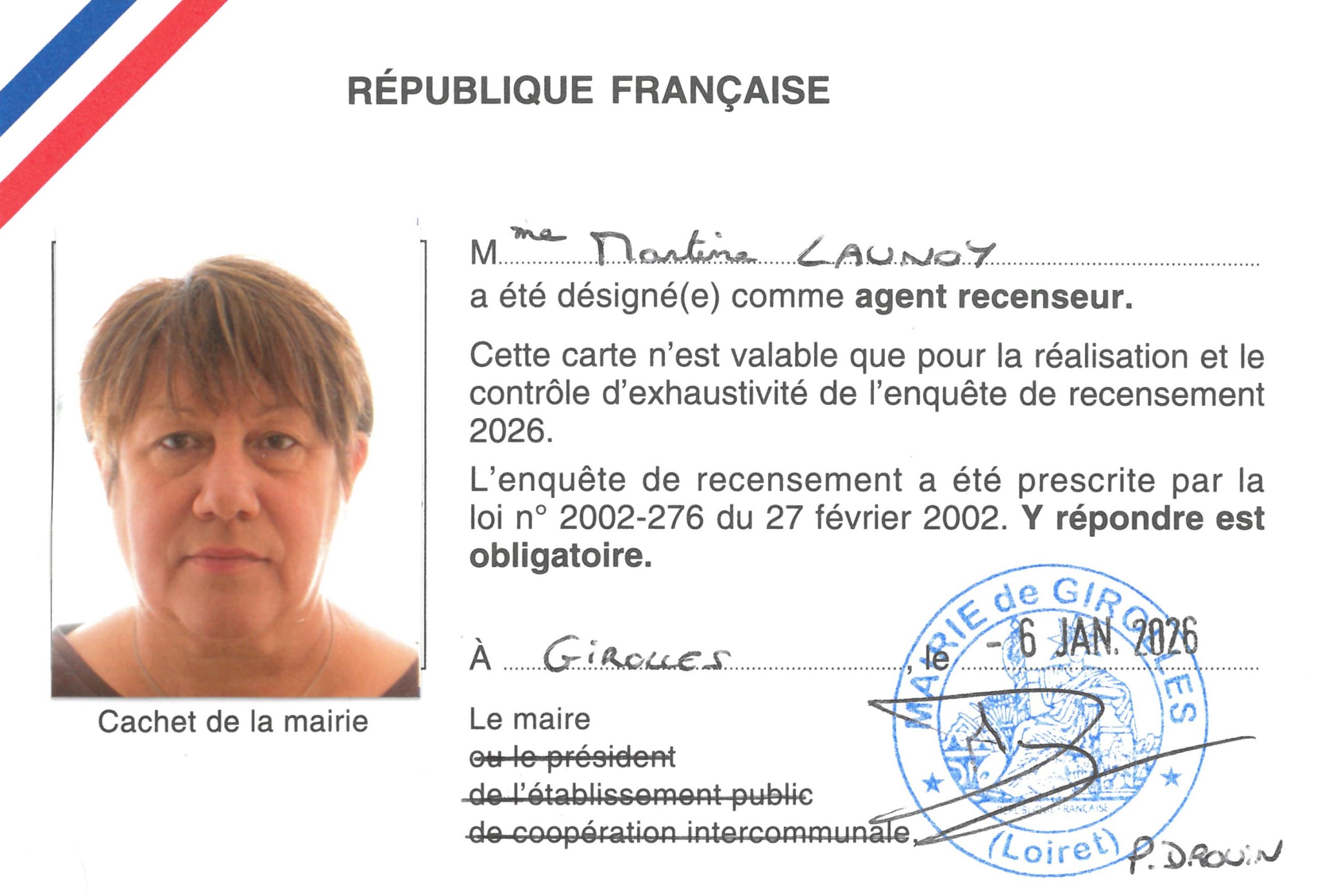 Martine LAUNOY sera l’agent recenseur pour cette campagne de recensement 2026.
